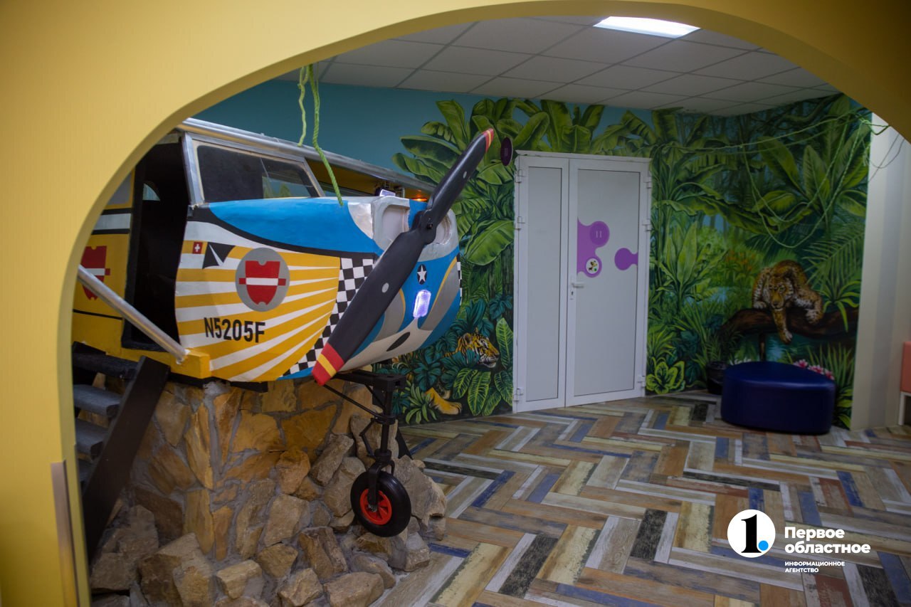 «В этом филиале поликлиники расположен уникальный детский игровой городок с моделью самолета, которую собирал настоящий летчик, квест для детей по поиску сокровищ, а новые кабинеты для физиолечения удивляют современным дизайном. Никаких унылых шторок в кабинетах физиолечения, а вместо бахил — разноцветные кроксы всех размеров», — так анонсирует экскурсию в обновленное отделение министерство здравоохранения Челябинской области.