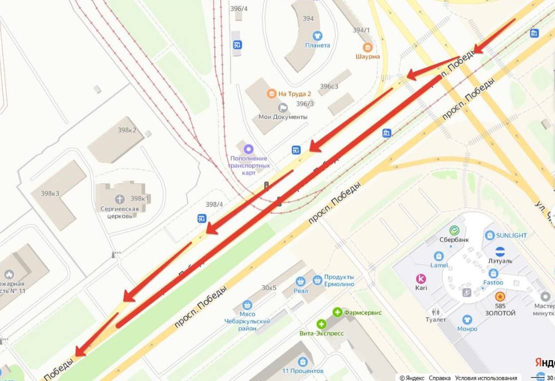 С вечера 26 октября движение транспорта на этом участке проспекта Победы перекрыли для ремонта трамвайных путей. Отменить ограничения должны были сегодня, 31 октября.