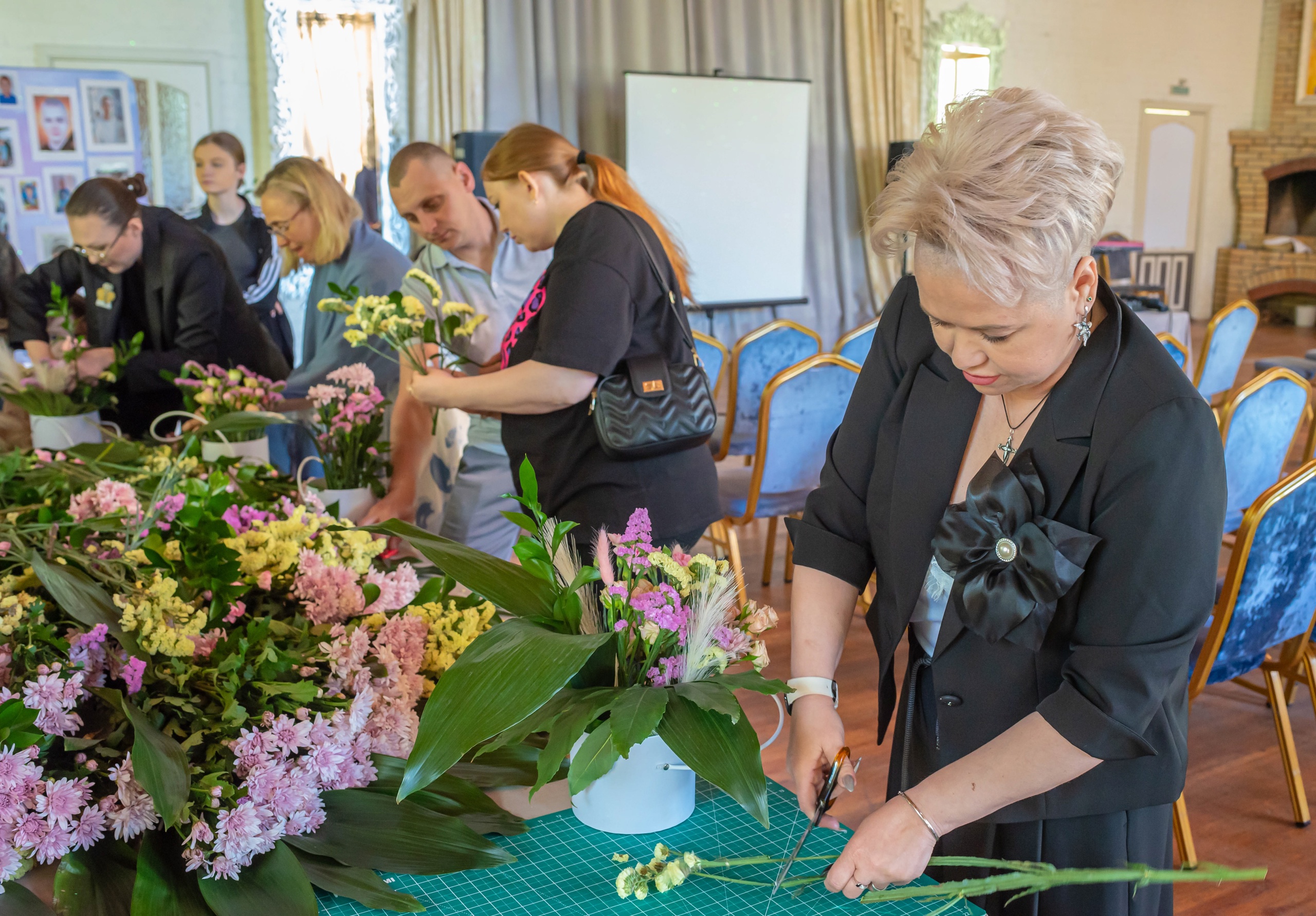 Для семей провели мастер-класс по изготовлению корзины цветов