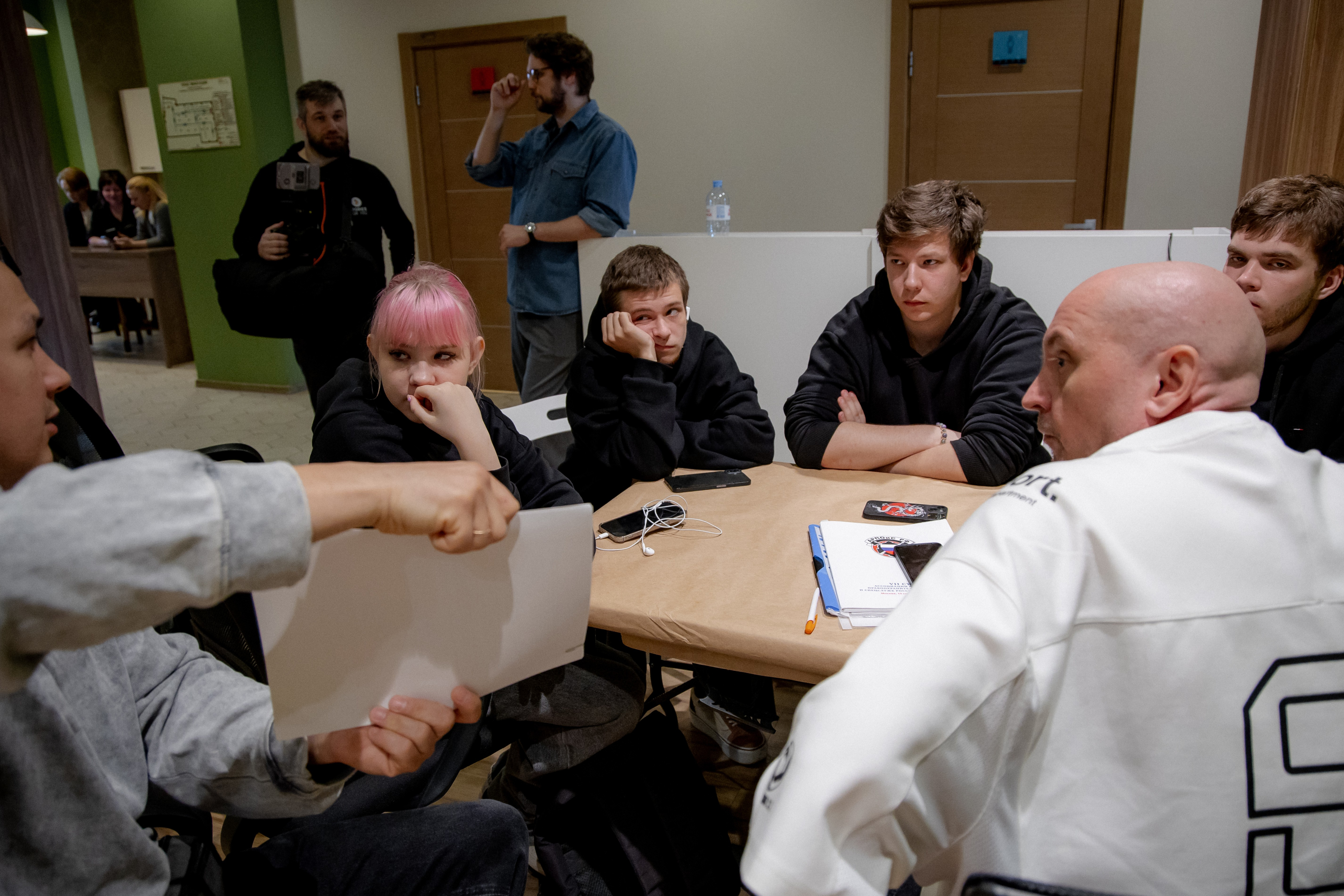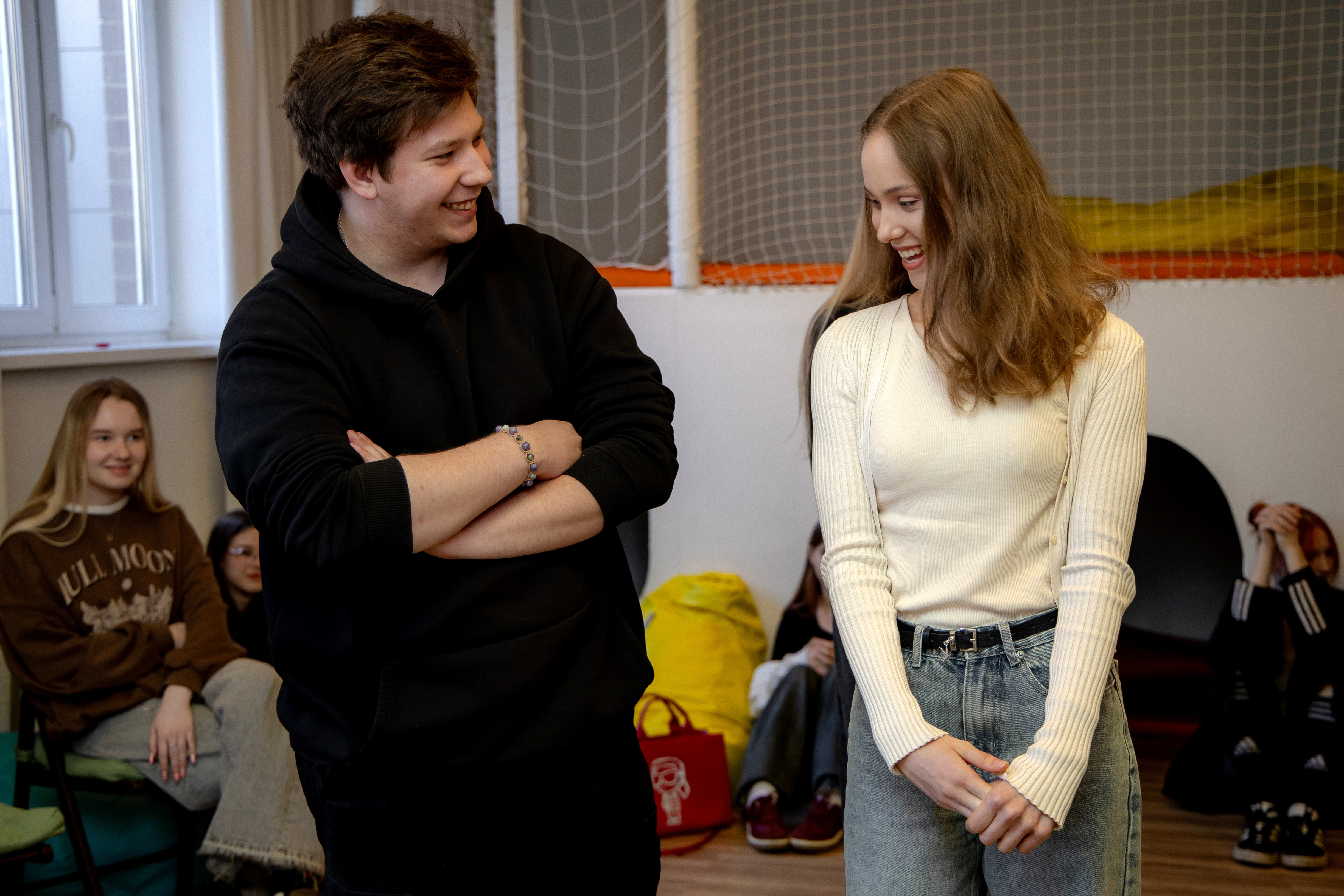 На кастинг за пару дней поступило более ста заявок, а сегодня на роли себя пробуют около 50 подростков. Преимущественно девушки, но и на роль юноши здесь есть ребята. Одни из них — друзья-тезки. Два Андрея познакомились на фестивале «МолоКО» и даже были в одной команде — играли хулигана и его жертву.