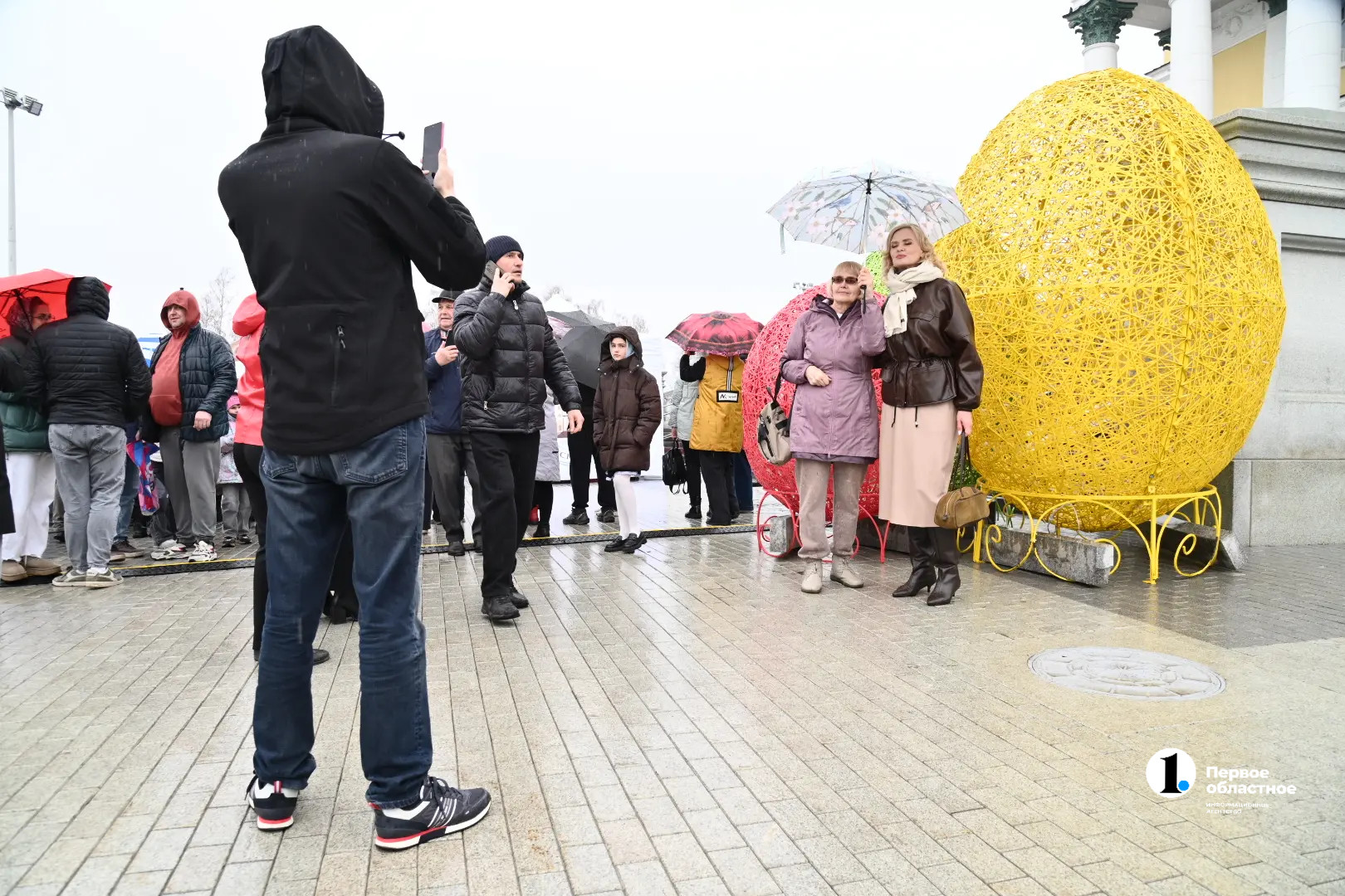 А еще челябинцы с удовольствием фотографировались около тематических архитектурных форм: на площади выставили гигантские пасхальные яйца.
