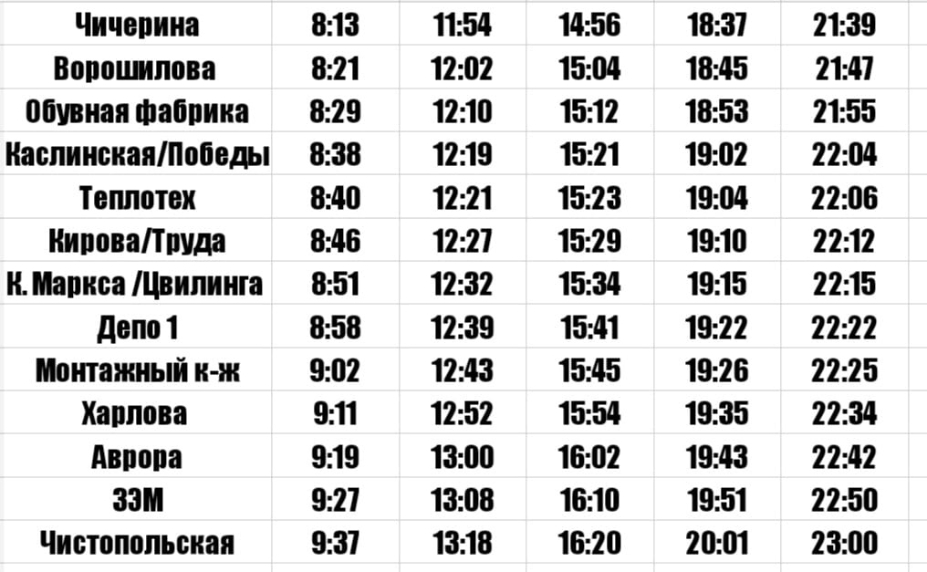 Ниже можно увидеть полное расписание в направлении «Чистопольская» — «Чичерина».