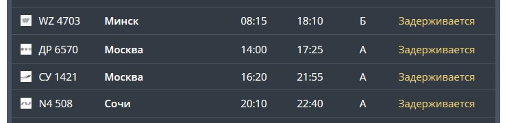 Аналогичная причина задержек двух рейсов в Москву и одного — в Сочи.