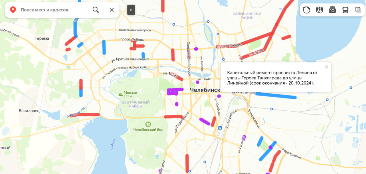 В Челябинске заработала специальная карта, которая показывает, на каких дорогах ведется строительство и ремонт. Как рассказали в мэрии, она будет отображать протяженность ремонтируемого участка и сроки завершения работ.