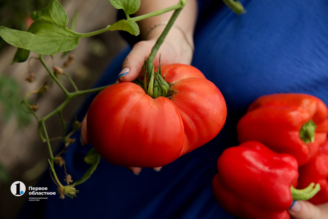 Помидоры здесь могут доходить до 1 килограмма 300 граммов. По словам матушки, такие гиганты собирают в самом начале сезона.