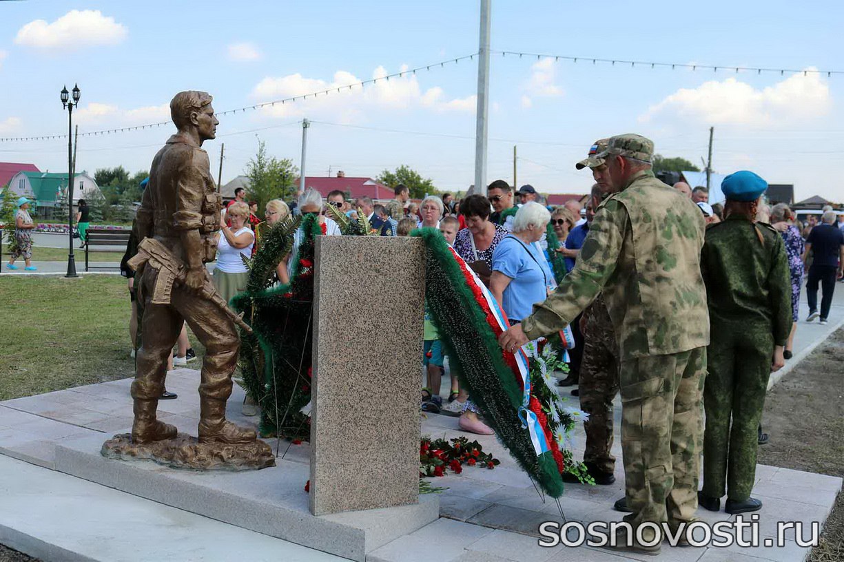 Основой для памятника в селе Долгодеревенском Сосновского округа стал образ реального военнослужащего, Героя РФ (посмертно) Андрея Мосина.