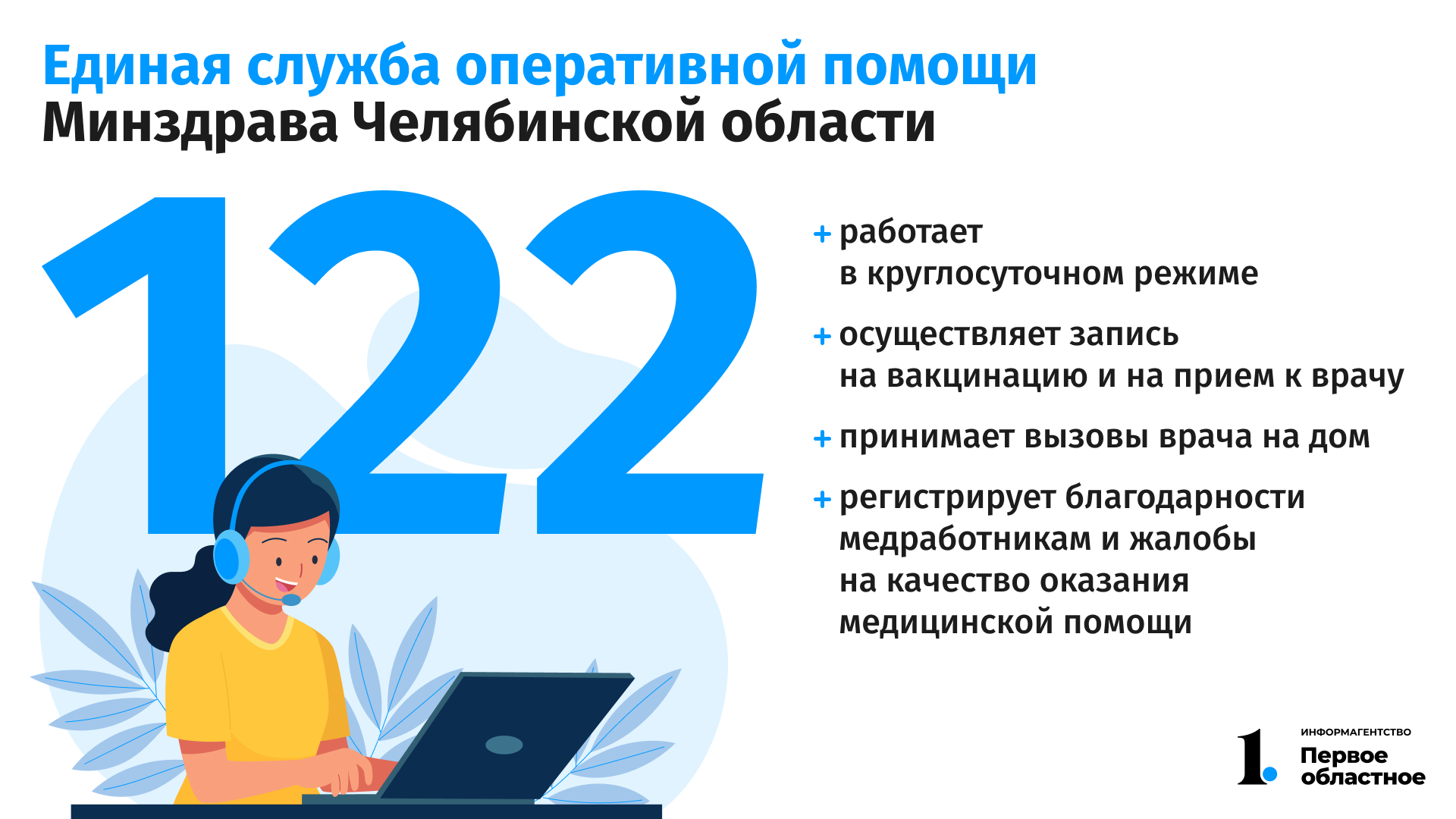 Единая служба оперативной помощи минздрава Челябинской области будет работать в круглосуточном режиме, осуществлять запись на вакцинацию и на прием к врачу, принимать вызовы врача на дом и регистрировать благодарности медработникам и жалобы на качество оказания медицинской помощи.