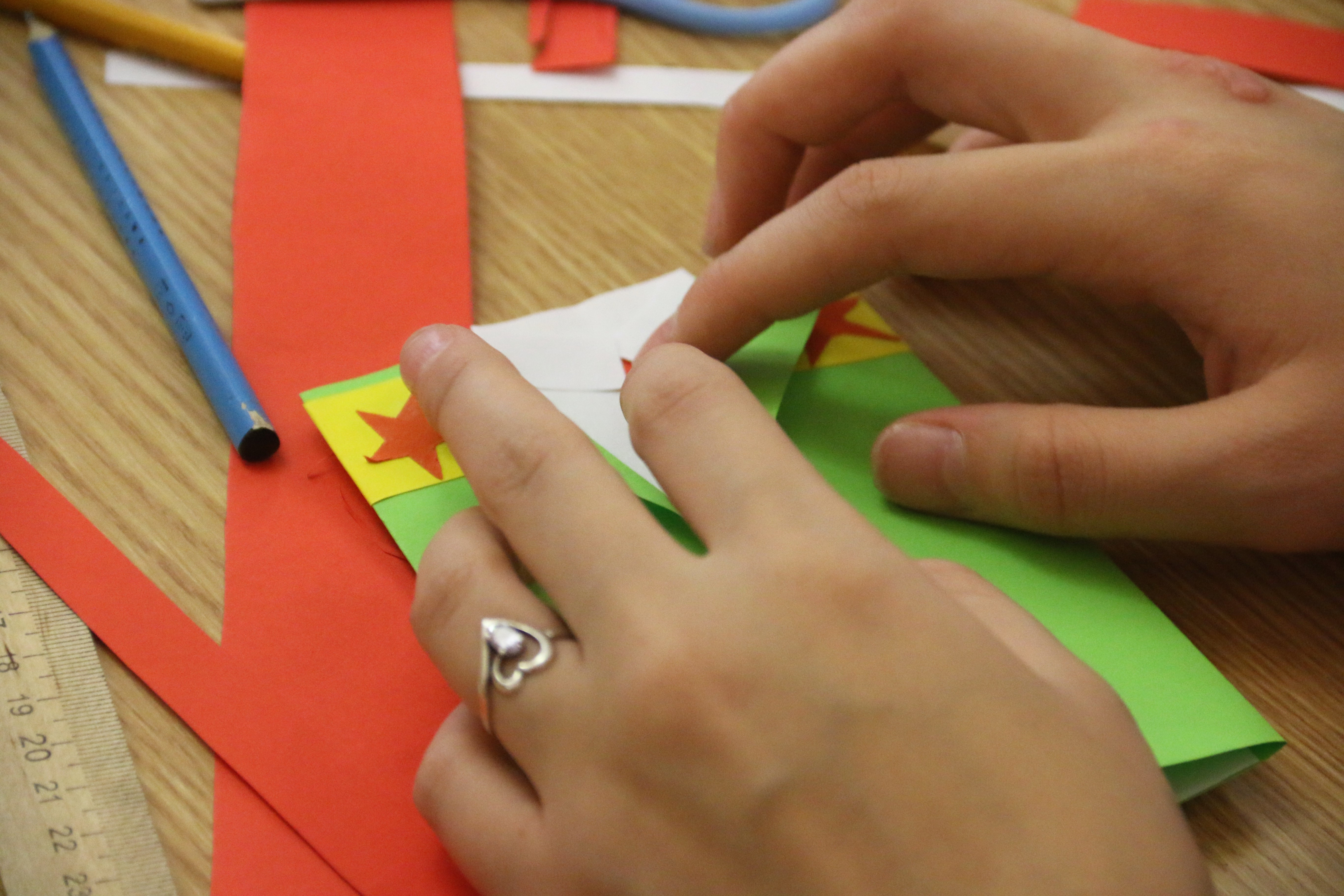 В Магнитогорске волонтеры штаба #МЫВМЕСТЕ провели мастер-класс по изготовлению открыток для российских военнослужащих. Воспитанники Центра помощи детям «Родник» сделали открытки в виде военной формы, где написали, как гордятся солдатами и ждут их возвращения.