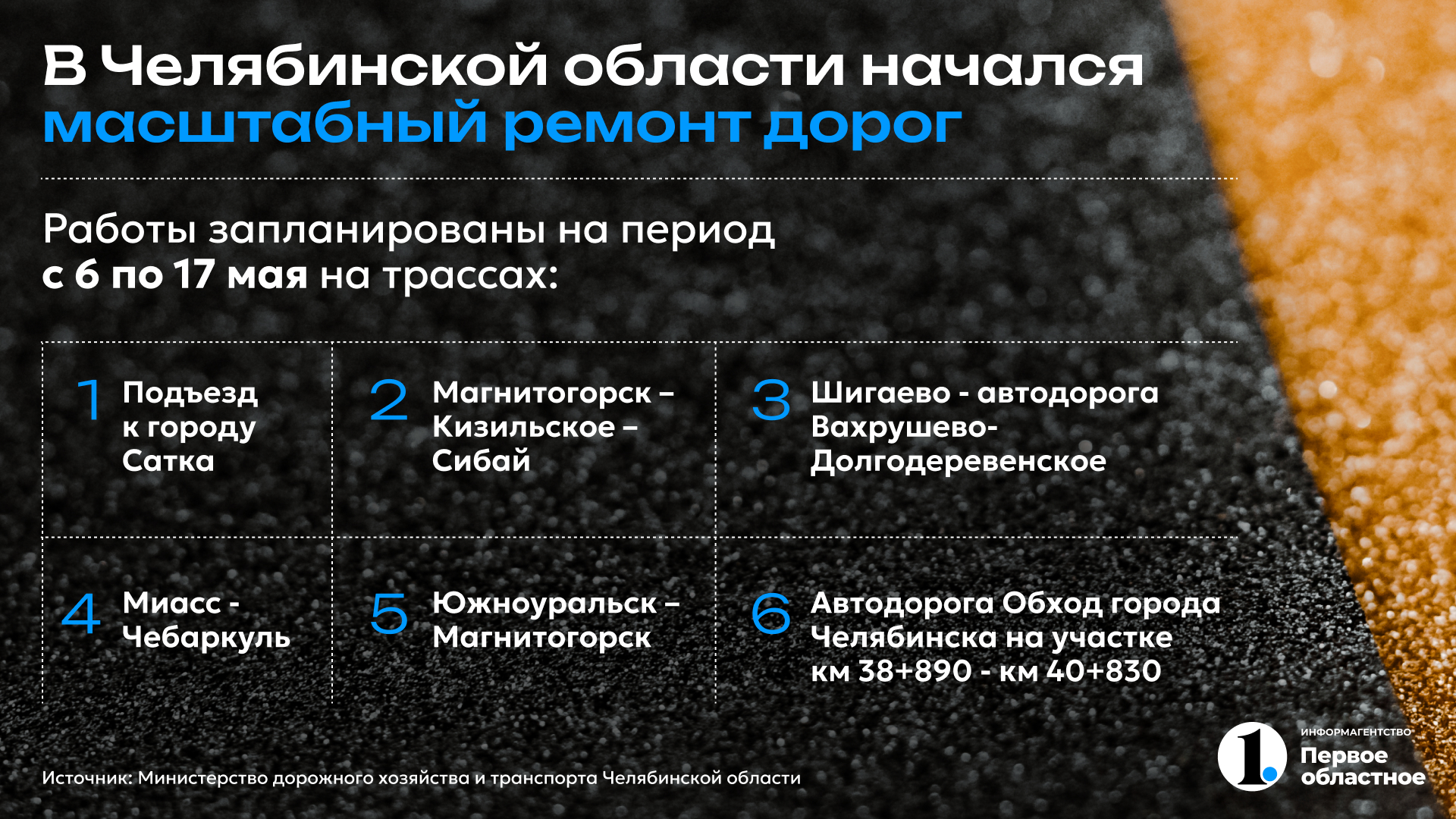 По данным пресс-службы регионального Миндора, с 6 по 17 мая в Челябинской области запланированы работы на шести дорогах. Срезать асфальт и укладывать выравнивающий слой при благоприятной погоде будут на объектах: