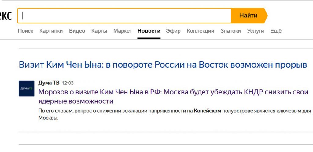 Отметим, что новость была о том, что в Россию с рабочим визитом прибыл глава КНДР Ким Чен Ын.
