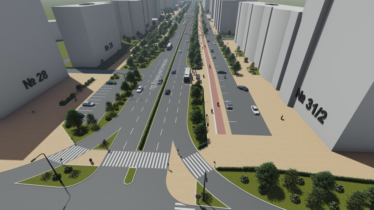 Работы будут вести на участке протяженностью около одного километра — от проспекта Победы до проспекта Ильича. После реконструкции, кроме расширенной проезжей части, на проспекте появятся тротуары шириной три метра и велодорожки шириной 2,5 метра. Территорию вдоль дороги озеленят, там установят остановки и фонари.