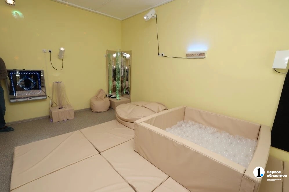 Ключевая особенность нового детсада — помещения для развития и укрепления здоровья воспитанников. В здании есть спелеокамера с гималайской солью и специальная комната с оборудованием для стимуляции сенсорного восприятия детей.