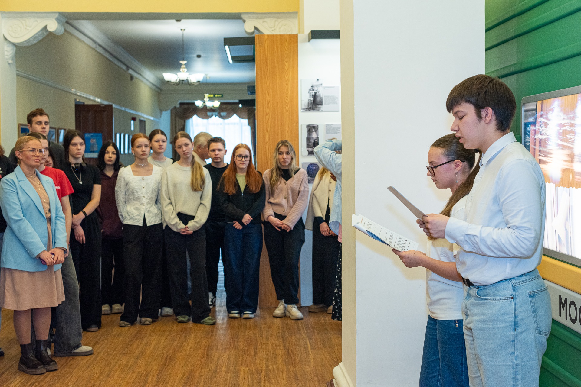 После показа для школьников и студентов провели экскурсию по выставочной экспозиции.