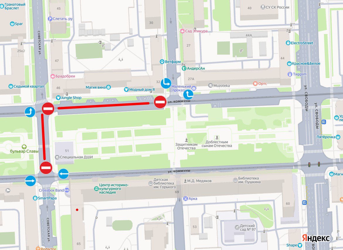 В то же время остается закрытым проезд по северной части улицы Коммуны от Советской до Пушкина. Водителей просят учитывать ограничения и планировать свой маршрут.