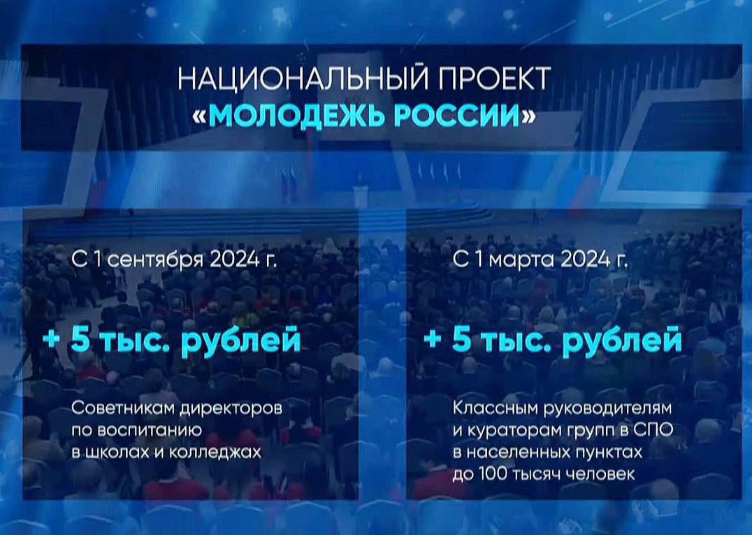 — с 1 сентября 2024 года предложено ввести выплату 5 тысяч рублей ежемесячно для советников директоров по воспитательной работе;