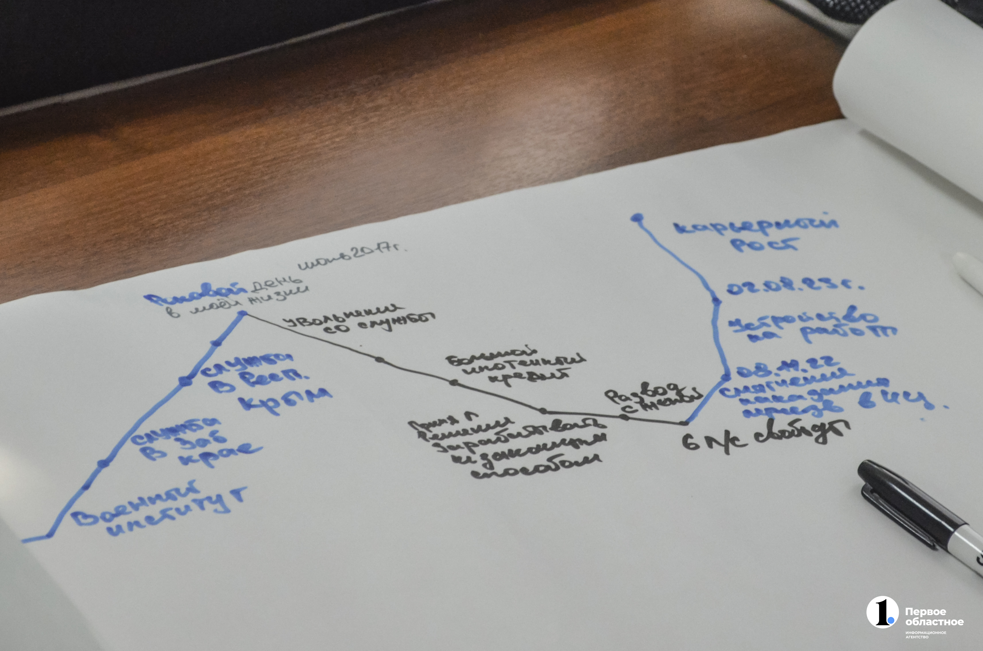 Психолог оглашает задание — на ватмане изобразить всю свою жизнь: и хорошие, и плохие моменты.
