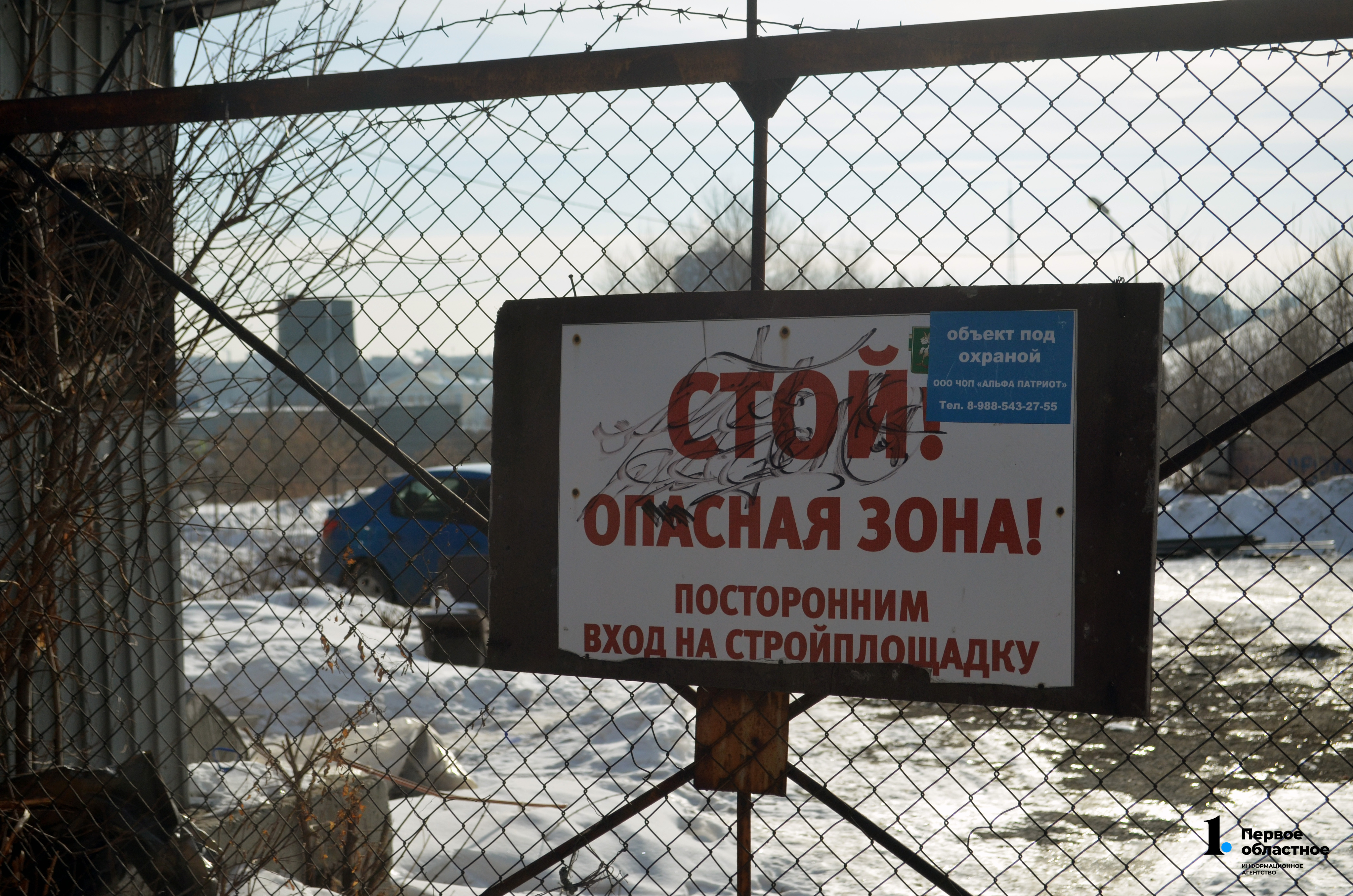 Рядом с ним, на территории недостроя, наш корреспондент заметил мужчину в оранжевом жилете, который представился строителем. Он поделился, что работает здесь три дня и с помощниками устанавливает высокий забор из профнастила. Однако детей, по его словам, как раз в эти дни здесь не было.