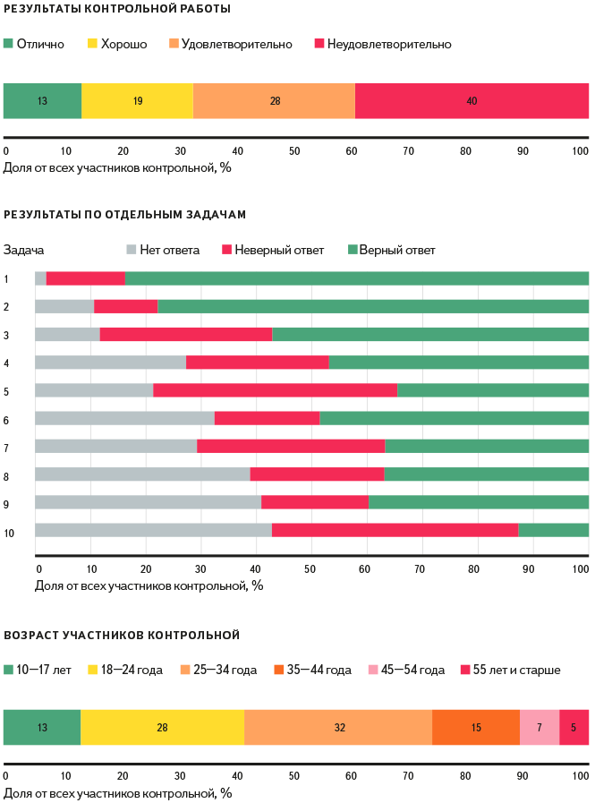 Попробовать свои силы решились люди всех возрастов, но большей популярностью экзамен пользовался среди возрастной группы от 25 до 34 лет. Для всех, кто не успел написать контрольную в выходные, есть возможность решить задачи и сейчас. Бланки с заданиями доступны на сайте.