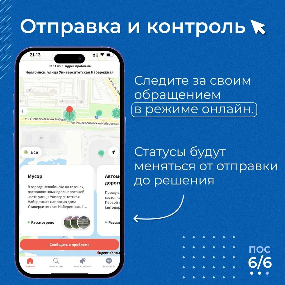 Платформа Обратной Связи позволяет оперативно сообщать о проблемах и отслеживать их решение. ПОС доступна через портал госуслуг, мобильное приложение «Госуслуги. Решаем вместе» и специальные виджеты на сайтах органов власти.