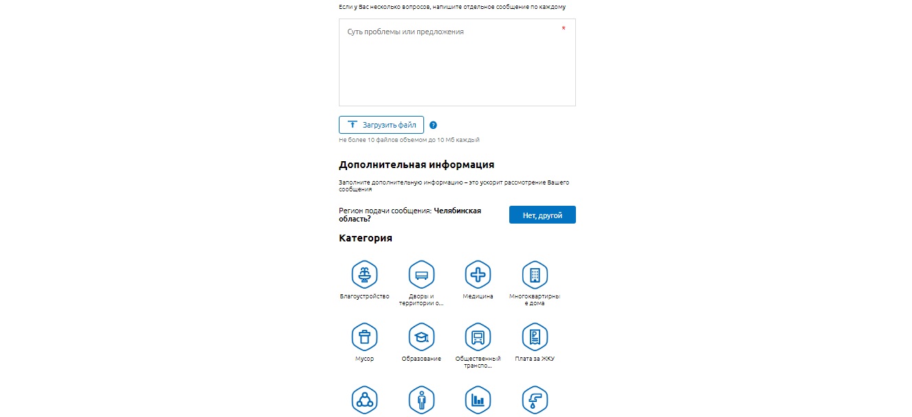 «На странице предлагается описать проблему, загрузить необходимые файлы и выбрать категорию сообщения. Это может быть, например, вопрос по отлову животных, претензия к качеству услуг ЖКХ, жалоба на дорогу. Через некоторое время автору будет дан ответ», — отметили в региональном правительстве.