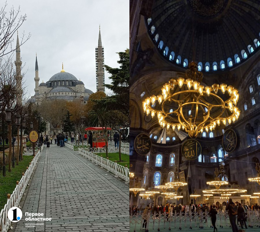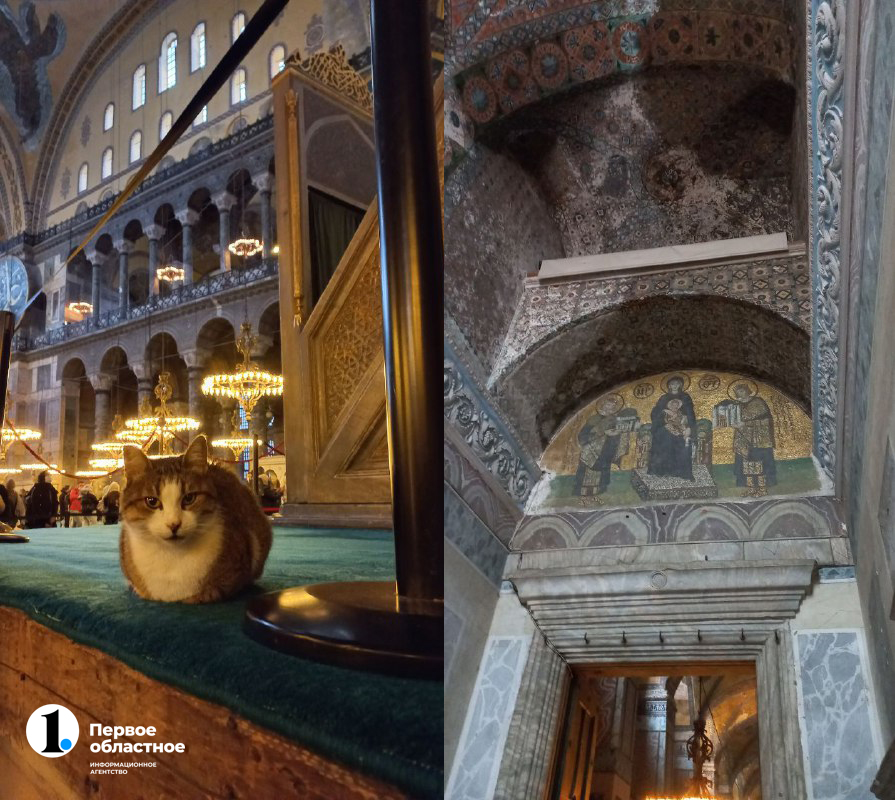 Самая известная Голубая мечеть сейчас закрыта на реставрацию, поэтому все убранство спрятано от глаз туристов. Но поблизости на площади Султанахмет находится Айя-София, которая открыта для посещения. Это, пожалуй, самая известная достопримечательность Стамбула. Чем она известна? Это святыня двух религий: более тысячи лет это был главный православный собор, потом почти 500 лет главная мечеть. Несколько лет назад из здания сделали музей, но недавно вновь вернули статус мечети.