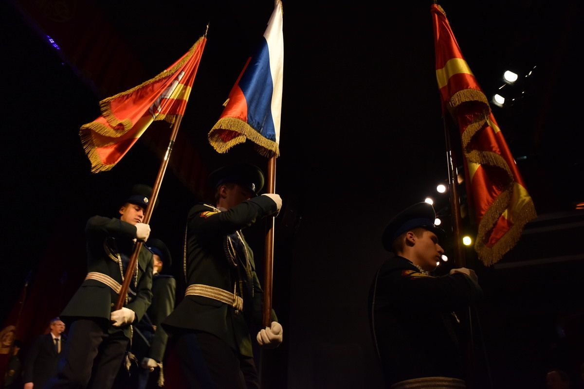Церемония прошла накануне вечером в театре «Омнибус». Там на сцену вынесли знамена предприятий, которые в годы Великой Отечественной войны выпускали для фронта оружие: машиностроительного, металлургического, абразивного, часового заводов.