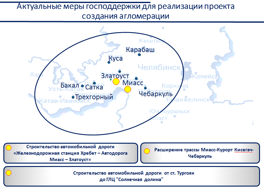 Туризм — центральная бизнес-тема агломерации. От него во многом зависит и развитие связующей территории между Миассом и Златоустом, которую мы видим в числе приоритетов. Транспорт — еще одна системообразующая тема. От повышения транспортной доступности зависят другие направления интеграции. — прокомментировали сайту «Первый областной» в министерство экономического развития региона.