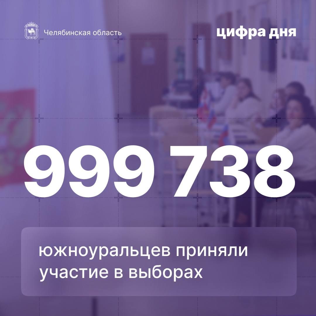 «Цифра дня — 999 738 жителей Челябинской области приняли участие в выборах депутатов Законодательного Собрания и органов местного самоуправления. Отмечу также, что выборы прошли открыто и легитимно. Благодарю каждого, кто отдал свой голос и проявил активную гражданскую позицию», — написал он.