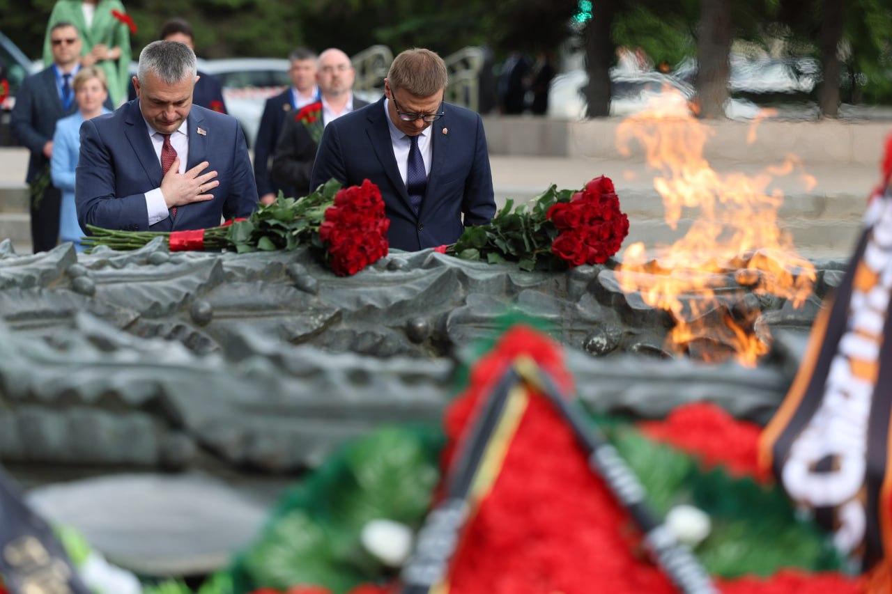 В знак памяти о погибших в Великой Отечественной войне Алексей Текслер и Иван Крупко возложили цветы к Вечному огню в Челябинске.