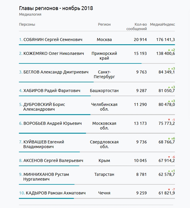 Отметим, что медиаиндекс Бориса Дубровского 80 478, что всего на 4 тысячи меньше, чем у губернатора Санкт-Петербурга Александра Беглова.