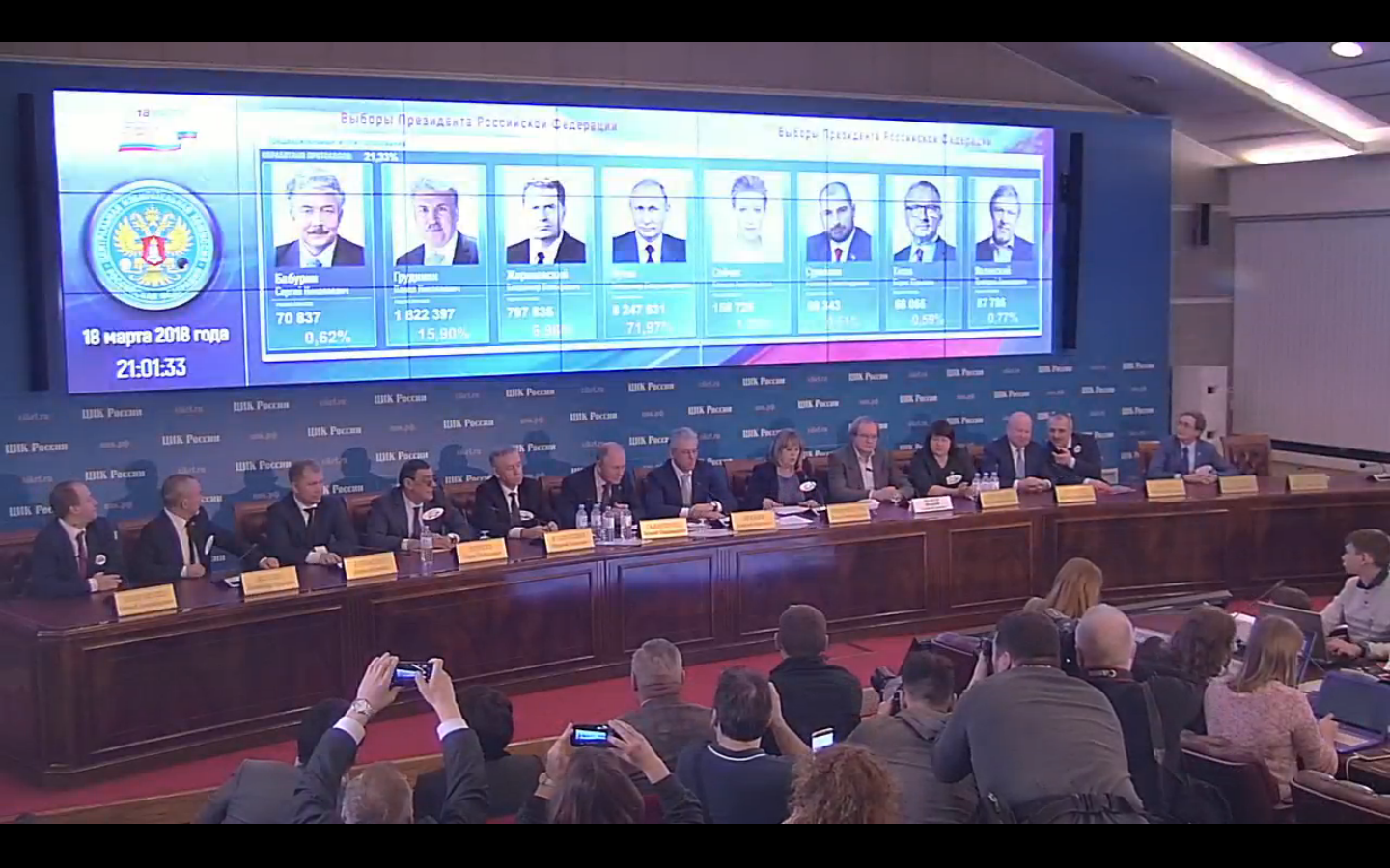 23:15 — Председатель Центральной избирательной комиссии Элла Памфилова просит не торопиться при подведении итогов выборов Президента. Основные результаты подсчета голосов представят завтра, 19 марта. Точные цифры будут опубликованы через несколько дней.
