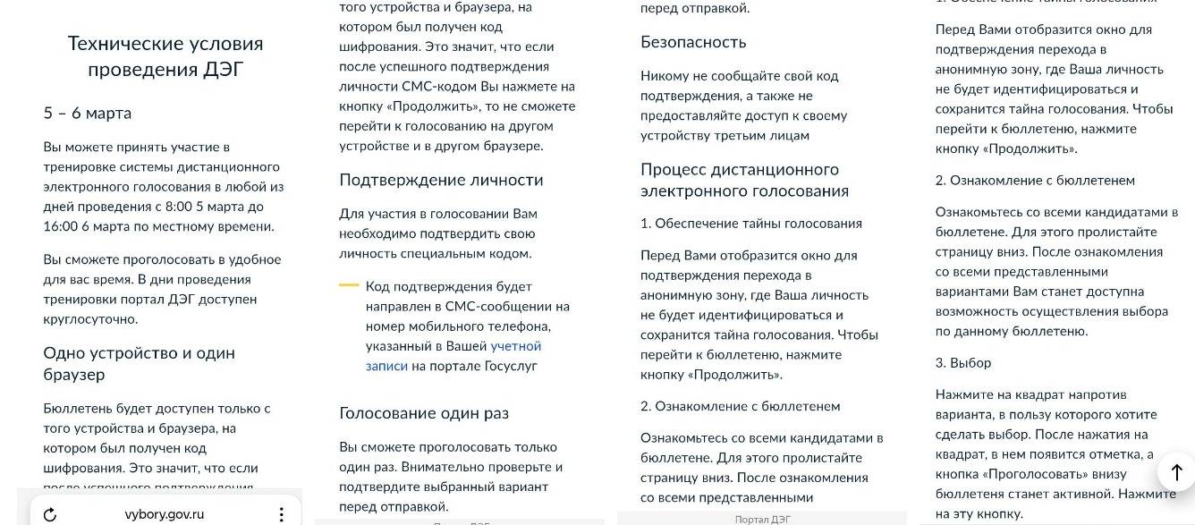 «Приняв участие в тренировке, избиратели смогут ознакомиться с процедурой дистанционного электронного голосования, функциональностью портала ДЭГ и портала наблюдения, а также заранее проверить свое устройство и браузер на соответствие минимальным требованиям корректной работы портала ДЭГ», — рассказали в ЦИК.