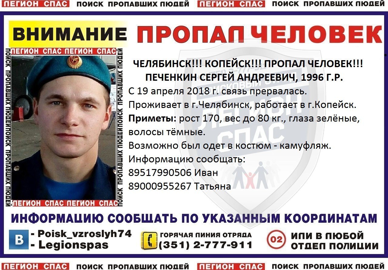 Уже месяц родные разыскивают 22-летнего Сергея Печенкина. Он может находиться сразу в двух городах: в Челябинске и Копейске. В областном центре он проживает, а в городе-спутнике работает. Однако 19 апреля связь с Сергеем Печенкиным прервалась у всего ближайшего окружения. Почти 30 дней от челябинца нет никаких вестей.