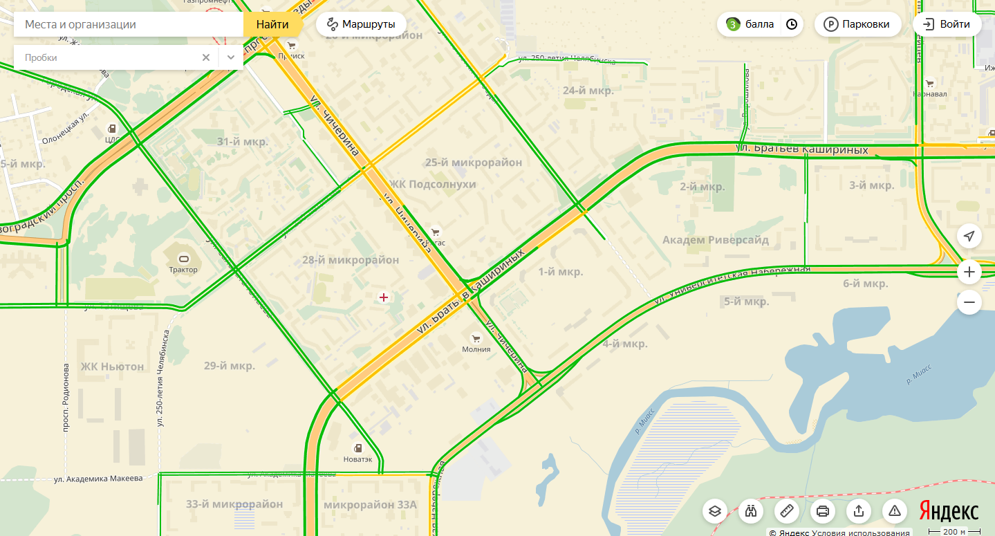 По данным «Яндекс. Пробки», сейчас на перекрестке затруднено движение. Скорость потока — 25 километров в час. Одна полоса частично закрыта для проезда автомобилей.
