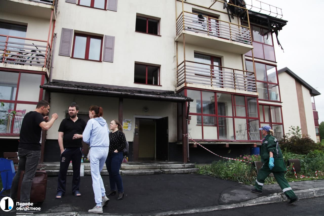 «Я гулял с ребенком на детской площадке. Резко начался ливень. Гром, молния. Видел, как один разряд попал прямо в крышу нашего дома. Сын испугался. Мы тут же бросились домой. Я забыл на площадке кое-какие вещи и, когда вернулся, увидел, как из крыши валит дым. Наша квартира угловая, огонь распространился туда чуть позже. Очаг возгорания где-то посередине был, вероятно», — рассказал ИА «Первое областное» житель пострадавшего дома Александр Ленев.