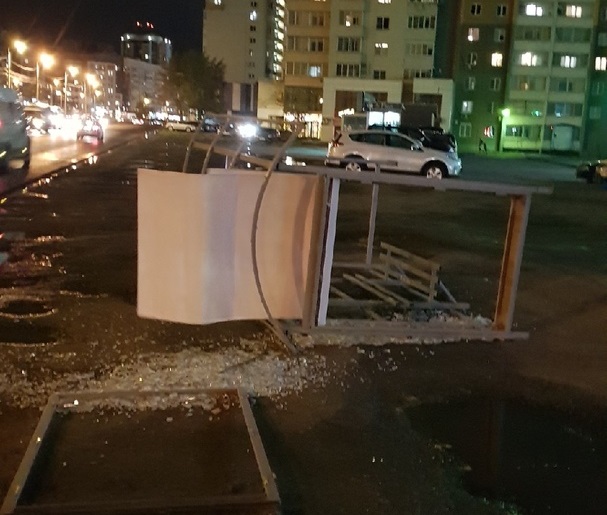 Немало «досталось» и остановочным комплексам в тот день. Некоторые просто переворачивало, другие покорёжило ветром, а один даже упал на вагон трамвая. Но всё обошлось благополучно: ни вагон, ни остановка, ни люди не пострадали.