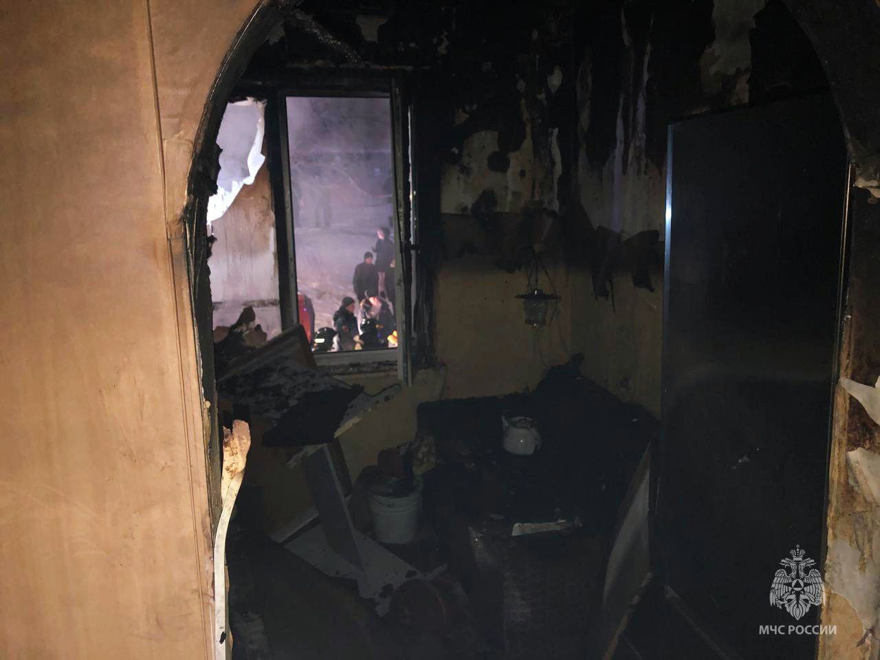Прибывшие к месту происшествия сотрудники МЧС обнаружили очаг пожара в одной из квартир, на кухне в районе вытяжки. Из-за сильного задымления в подъезде было эвакуировано 15 человек в специальных спаскомплектах. Среди спасенных — двое детей.
