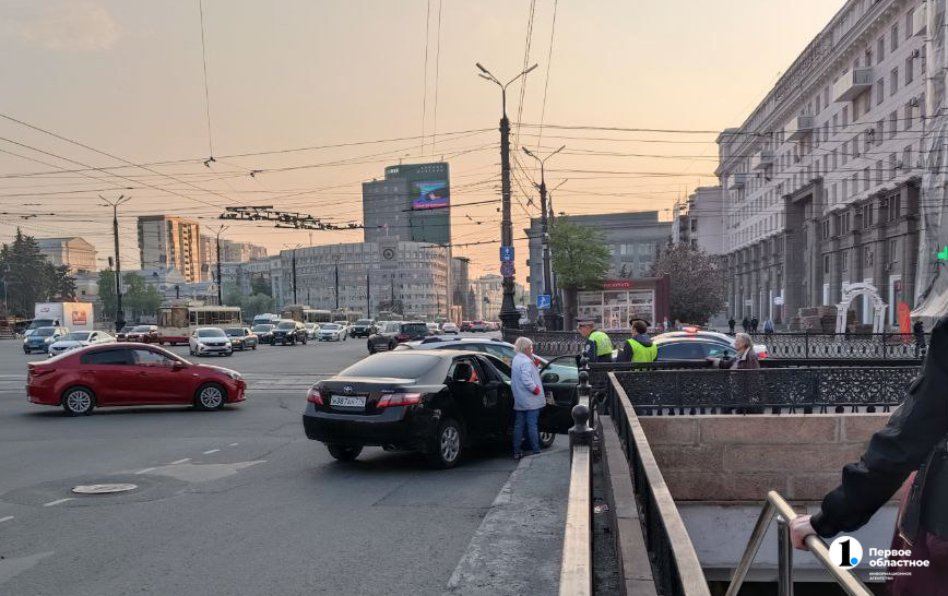 Автомобиль Toyota Camry, грузовик и трамвай столкнулись на пересечении проспекта Ленина и улицы Цвиллинга в Челябинске, сообщает корреспондент «Первого областного».