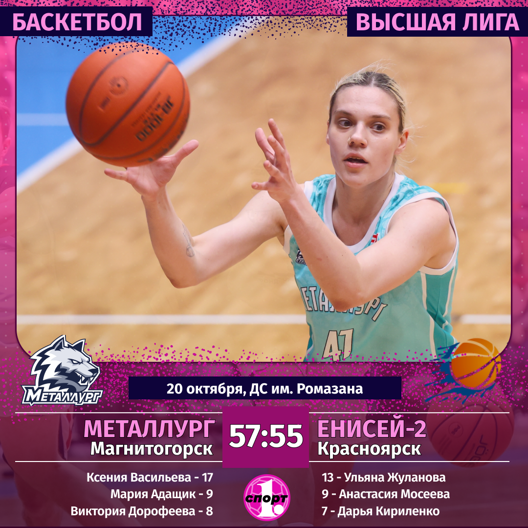 Две победы одержала женская баскетбольная команда «Металлург» в Высшей лиге чемпионата России. Девушки из Магнитогорска оказались сильнее соперниц из дубля красноярского «Енисея». В первом матче сибирячки оказали сопротивление, уступив со счетом 55:57, во втором хозяйки не дали им шанса на спасение — 70:50, сообщает корреспондент ИА «Первое областное».