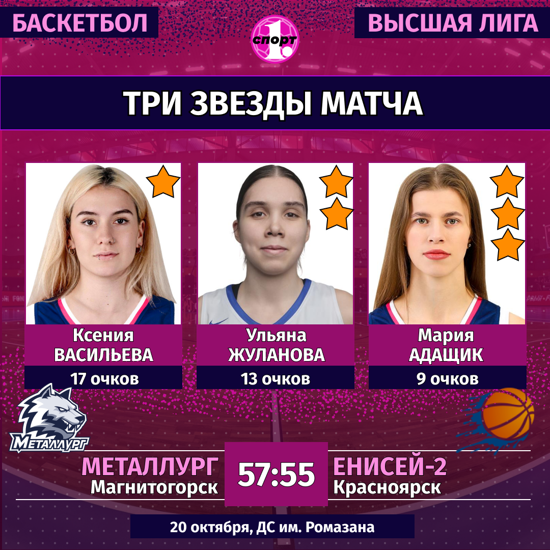 В ответном матче с «Енисеем-2» «Металлург» по-прежнему не мог рассчитывать на Арину Голикову и Дарью Аникину. В стартовой пятерке главный тренер Максим Синельников собрал Викторию Дорофееву, Олесю Межову, Марию Адащик, Ксению Васильеву и Дарью Андрюшкину.