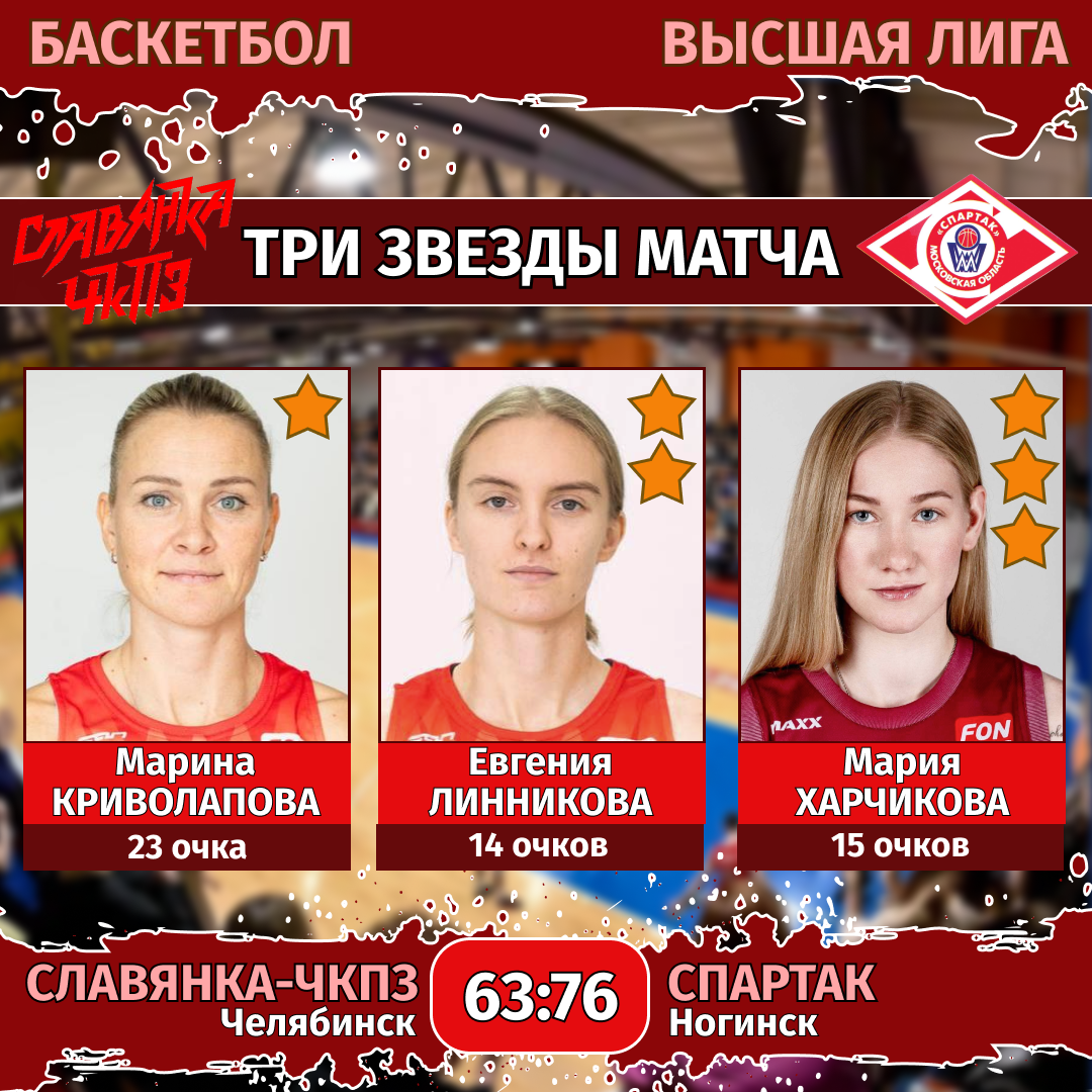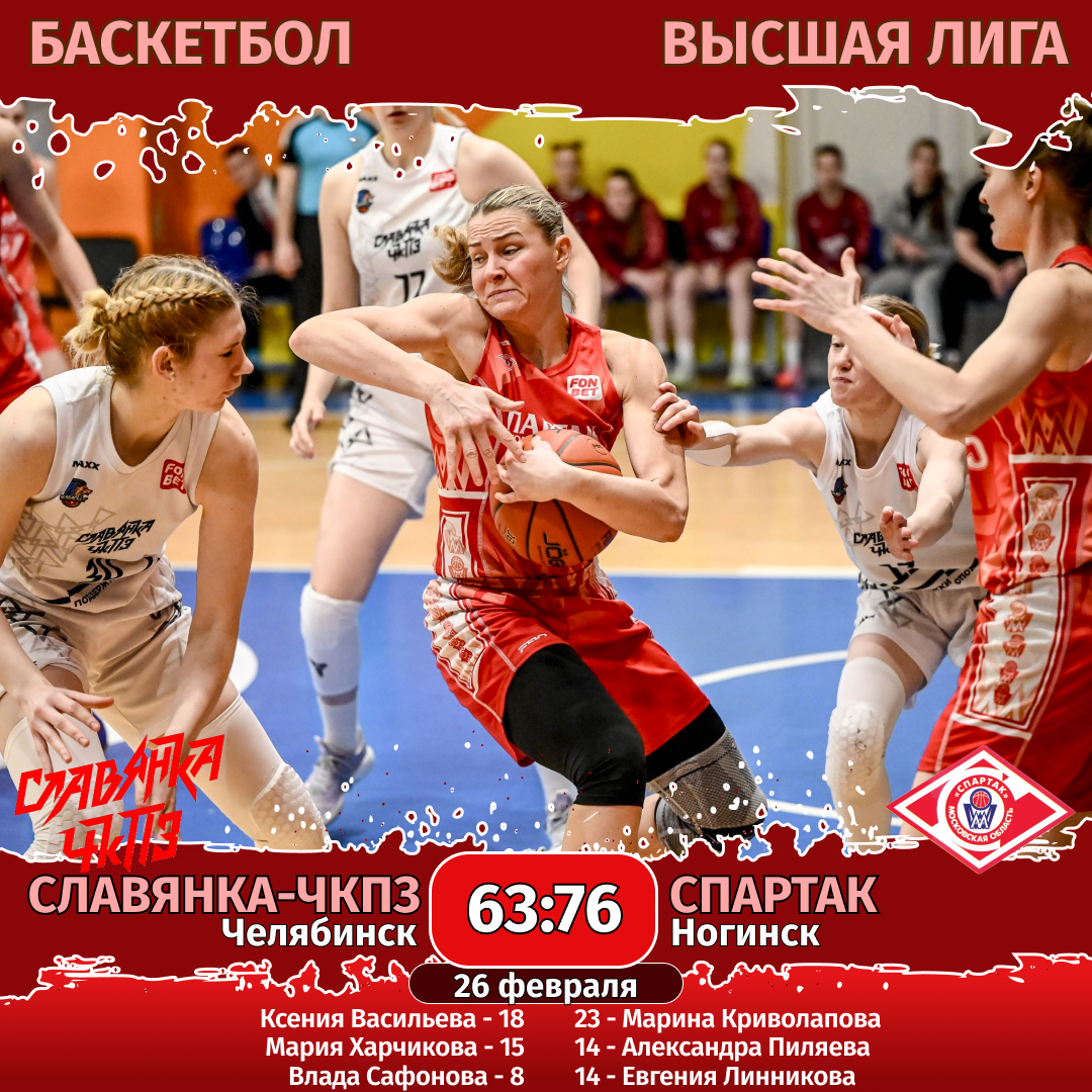 26 февраля. «Славянка-ЧКПЗ» (Челябинск) — «Спартак» (Ногинск) — 63:76 (16:14, 10:29, 22:15, 15:18).