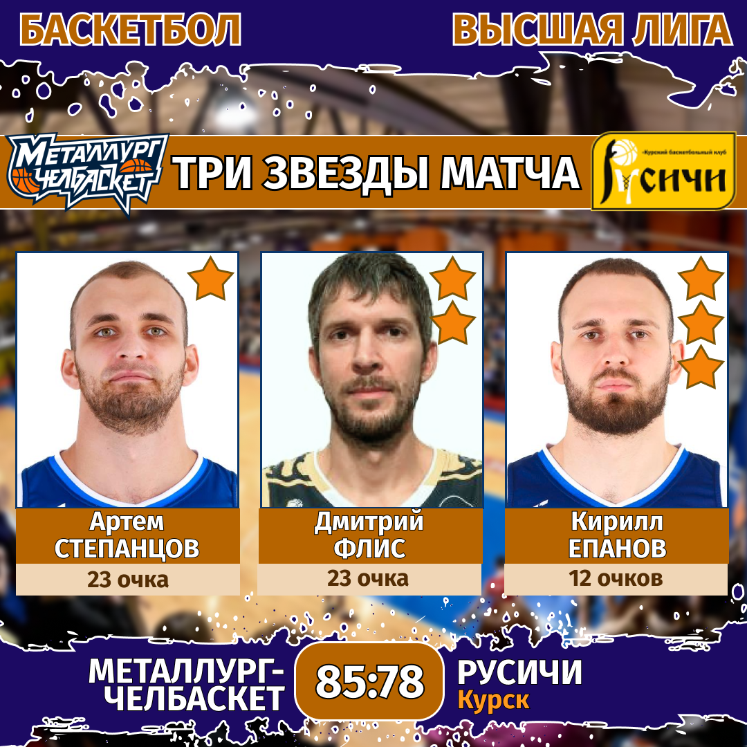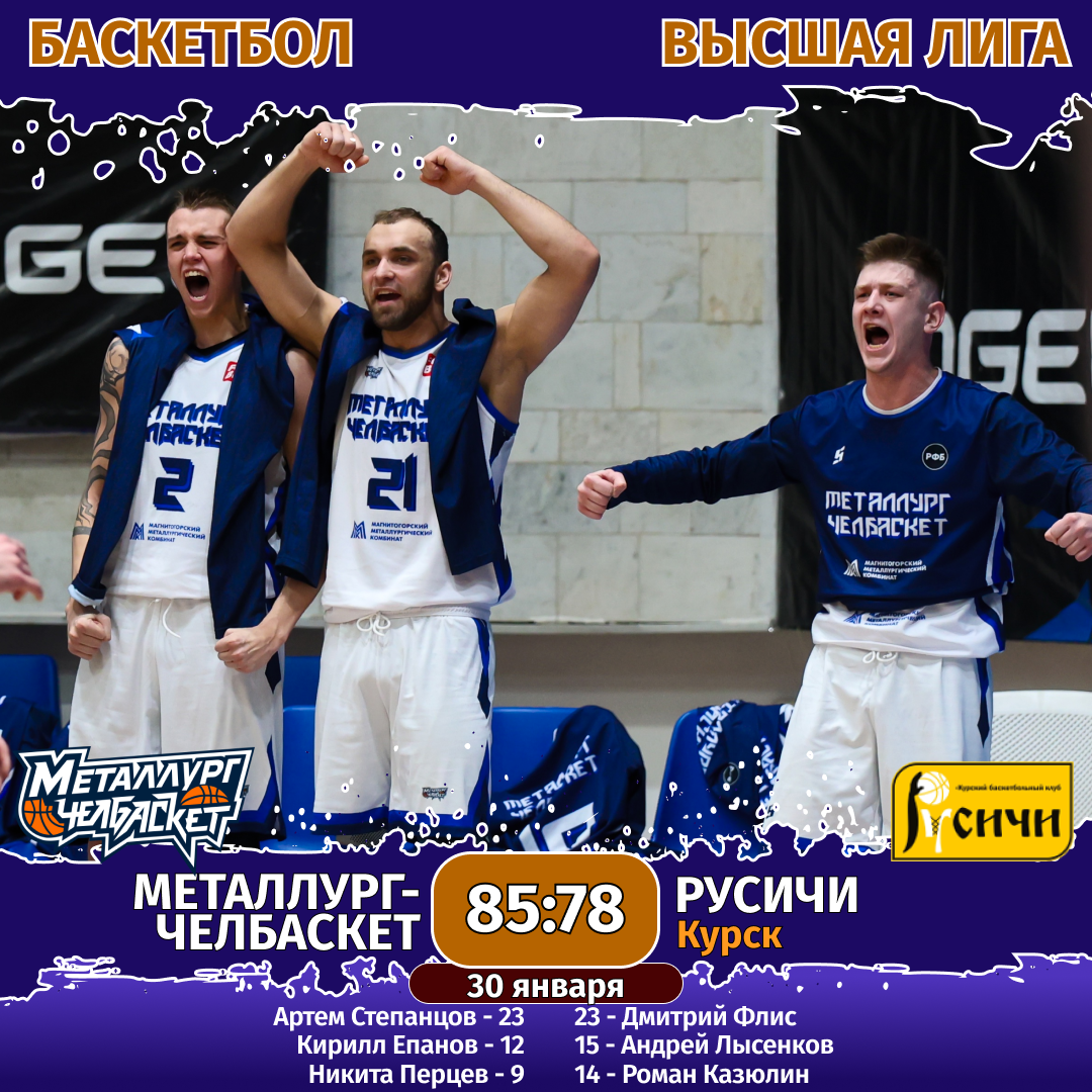 30 января. «Металлург-Челбаскет» (Челябинская область) — «Русичи» (Курск) — 85:78 (19:22, 25:18, 19:28, 22:10).
