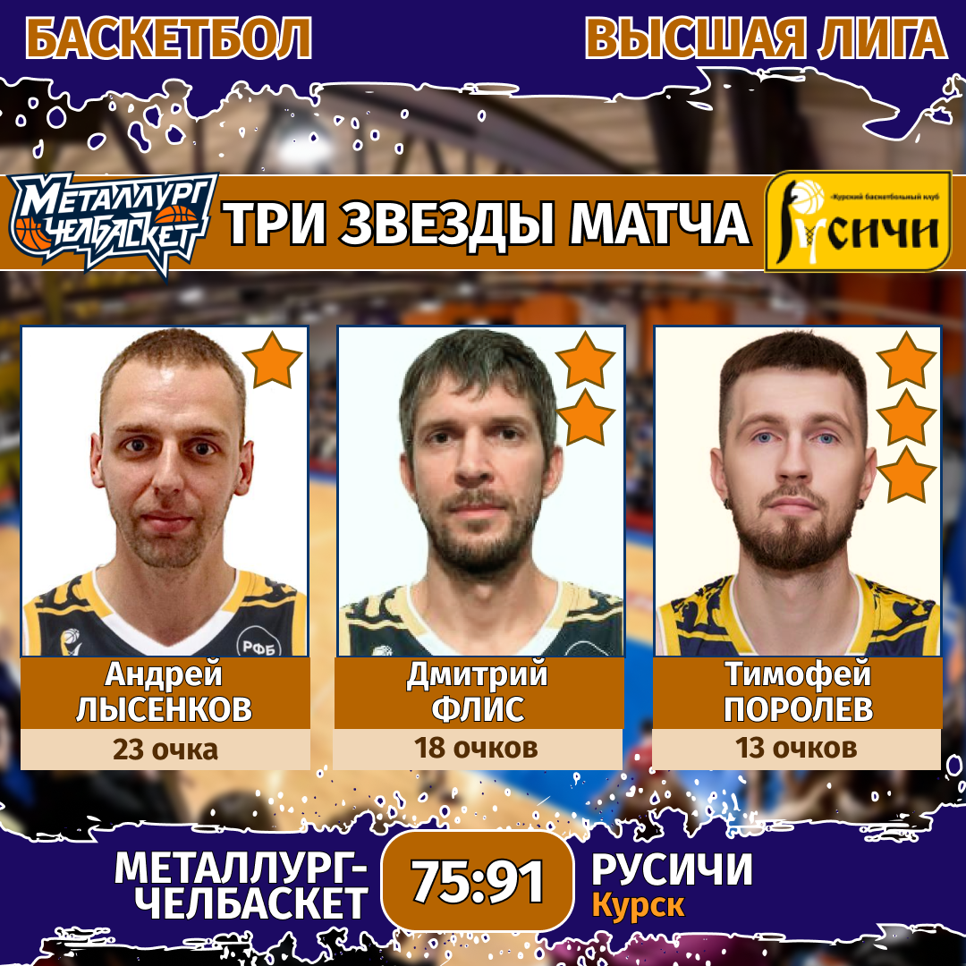 В матче первого круга «Русичи» дважды выиграли у южноуральцев на своей площадке — 97:76 и 86:84. Опытная команда из Курска идет в группе лидеров в Высшей лиге. И не без оснований рассчитывала укрепить свои позиции в турнирной таблице. Тем более что соперник для них был «по зубам» — молодой южноуральский коллектив хоть и дерзкий, но вполне проходимый для такой мастеровитой команды, как «Русичи».