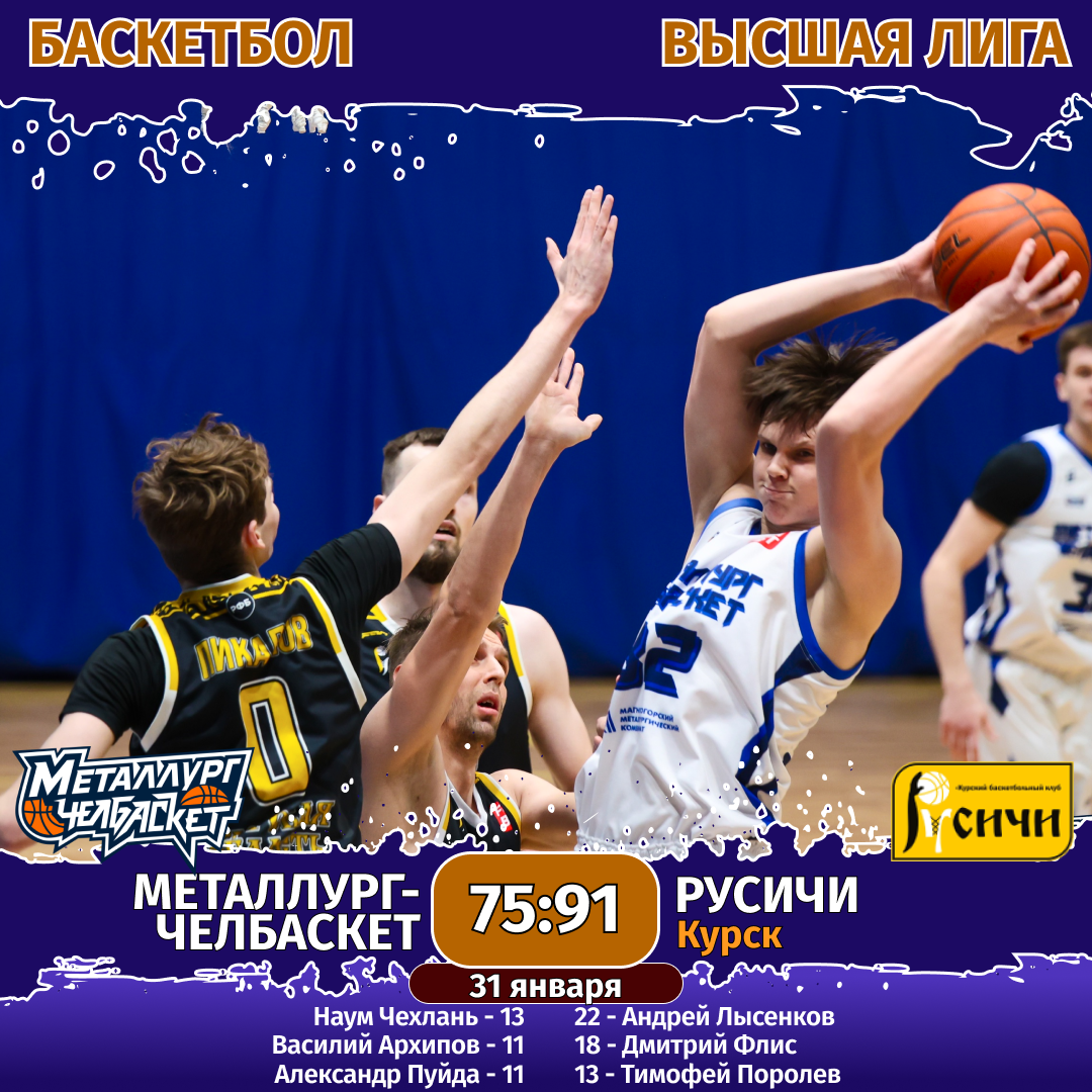 31 января. «Металлург-Челбаскет» (Челябинская область) — «Русичи» (Курск) — 75:91 (17:18, 20:20, 21:23, 17:30).