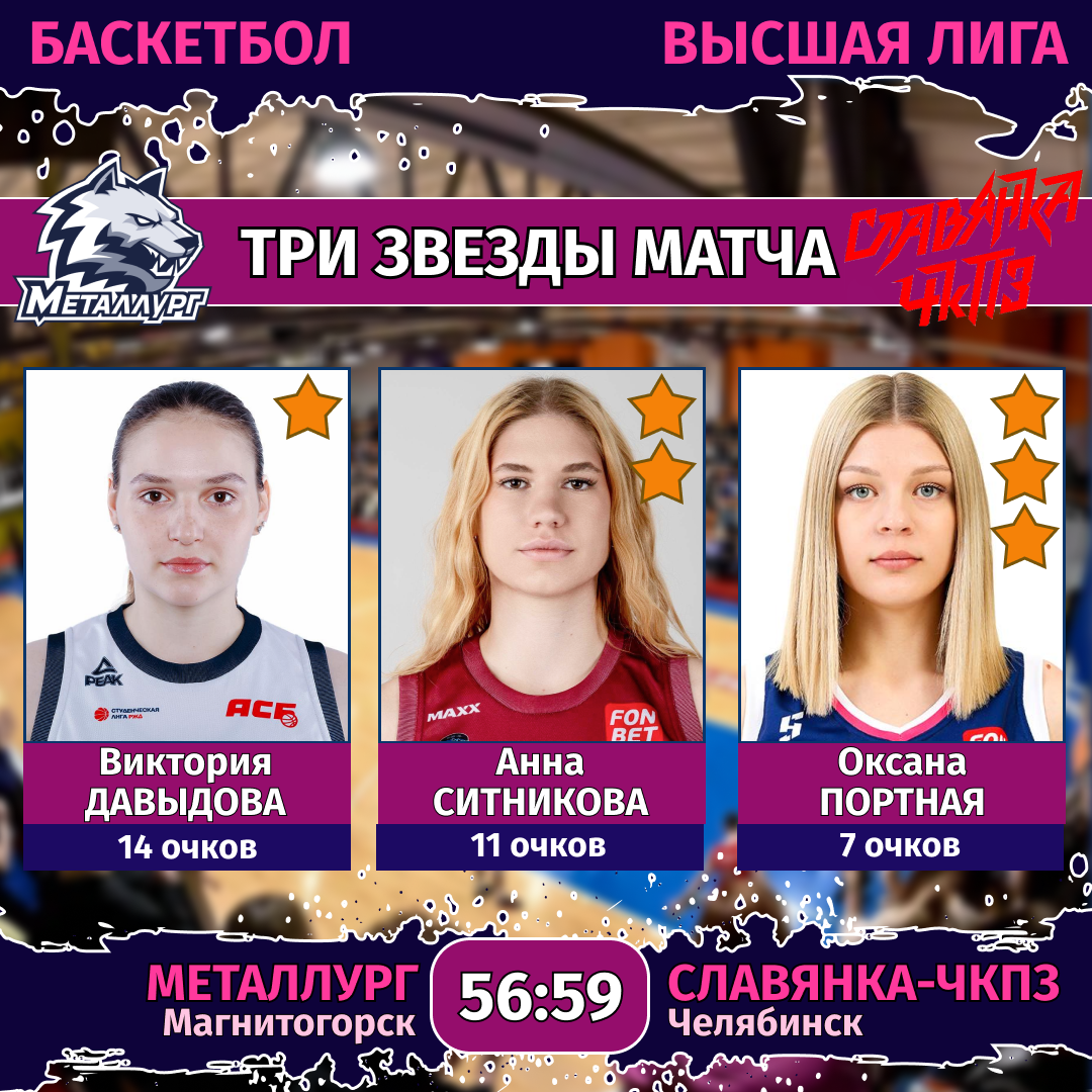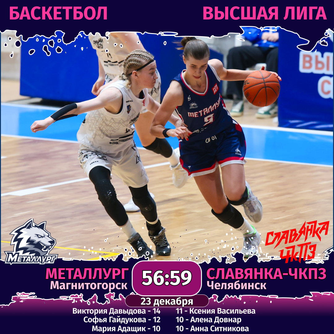 В баскетбольной Высшей лиге чемпионата России среди женских команд завершен первый круг. Челябинская «Славянка-ЧКПЗ» завершила промежуточный этап турнира на 3-м месте, магнитогорский «Металлург» — на 6-й позиции. Свои следующие матчи команды проведут уже в 2025 году.