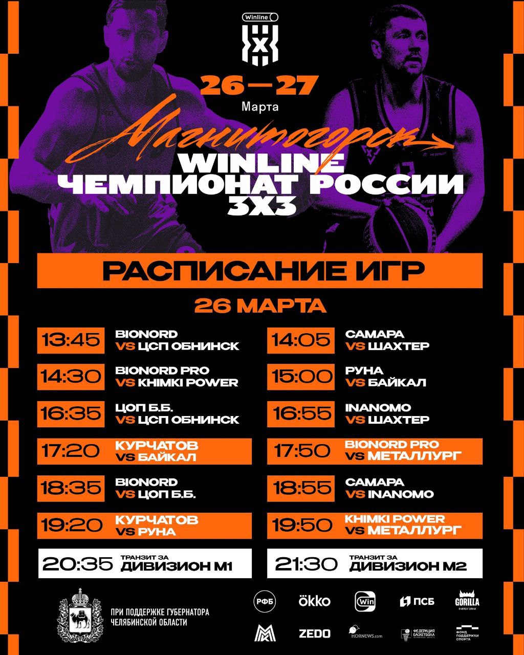 Сегодня, 26 марта, в Магнитогорске стартует тандем в дивизионе «Мастер» чемпионата России по баскетболу 3×3. В борьбу за трофей вступят 12 команд, среди них местный «Металлург» и челябинский «Курчатов». Публикуем расписание турнира, а также оцениваем перспективы двух наших команд в борьбе с сильнейшими клубами страны.