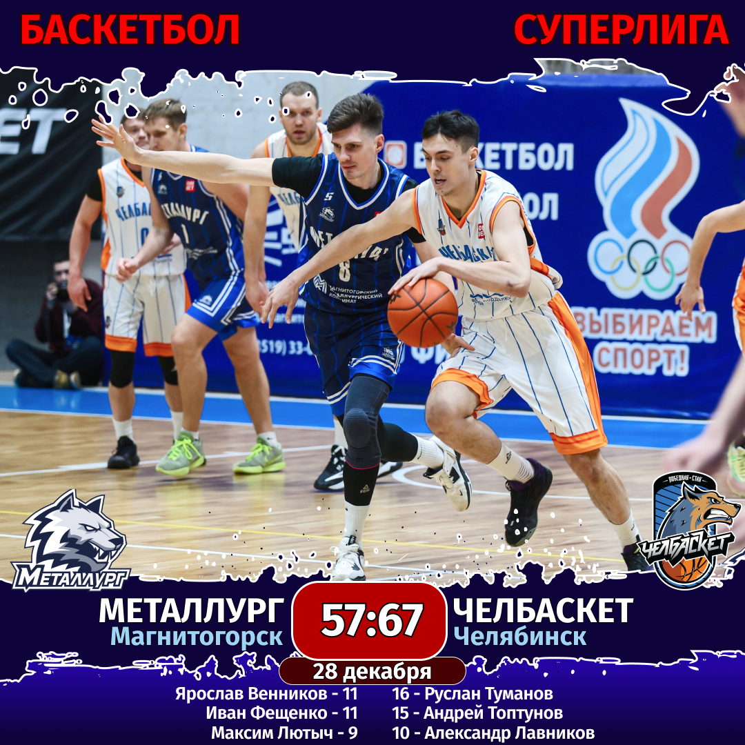 Последний матч года подвел черту под первым кругом в мужской баскетбольной Суперлиге. По его итогам «Челбаскет» замкнул шестерку сильнейших (8 побед, 7 поражений). Магнитогорский «Металлург» — на 15-й позиции (5 побед, 10 поражений). В новом году команды снова встретятся между собой, но уже на челябинской площадке. Игра состоится 11 января в ДПиШ имени Крупской.