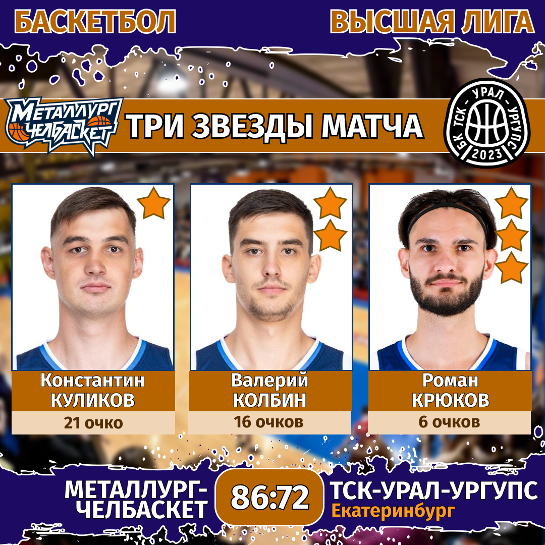 «ТСК-Урал-УрГУПС»: Киреев (27), Иванов (13), Мерзляков (10), Рейш (6), Макаров (6), Кошкин (6), Зинюк (5), Коковин (3), Лобанов (2), Речкалов, Романенко, Асташенко.