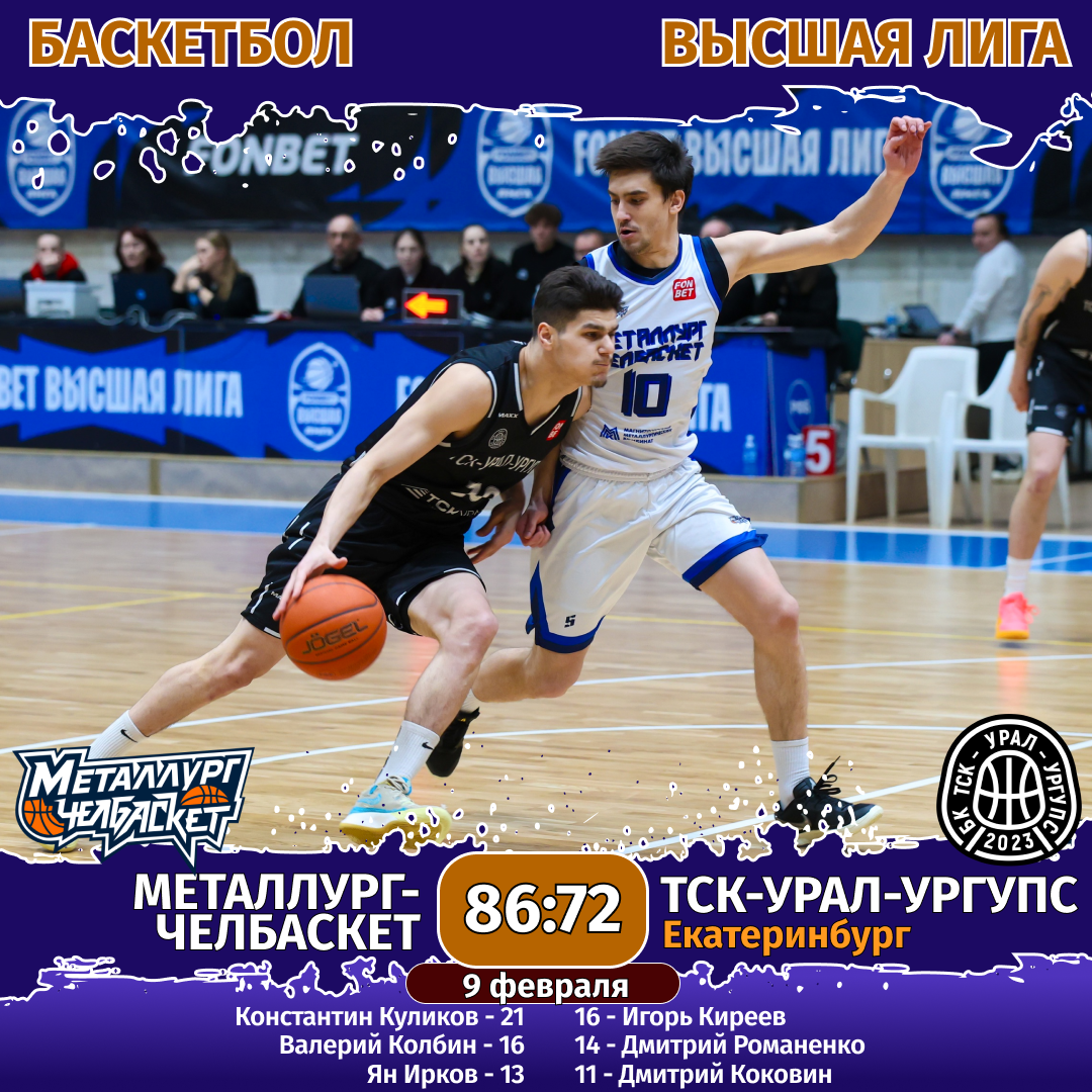 9 февраля. «Металлург-Челбаскет» (Челябинская область) — «ТСК-Урал-УрГУПС» (Екатеринбург) — 86:72 (26:19, 14:20, 15:20, 31:13).
