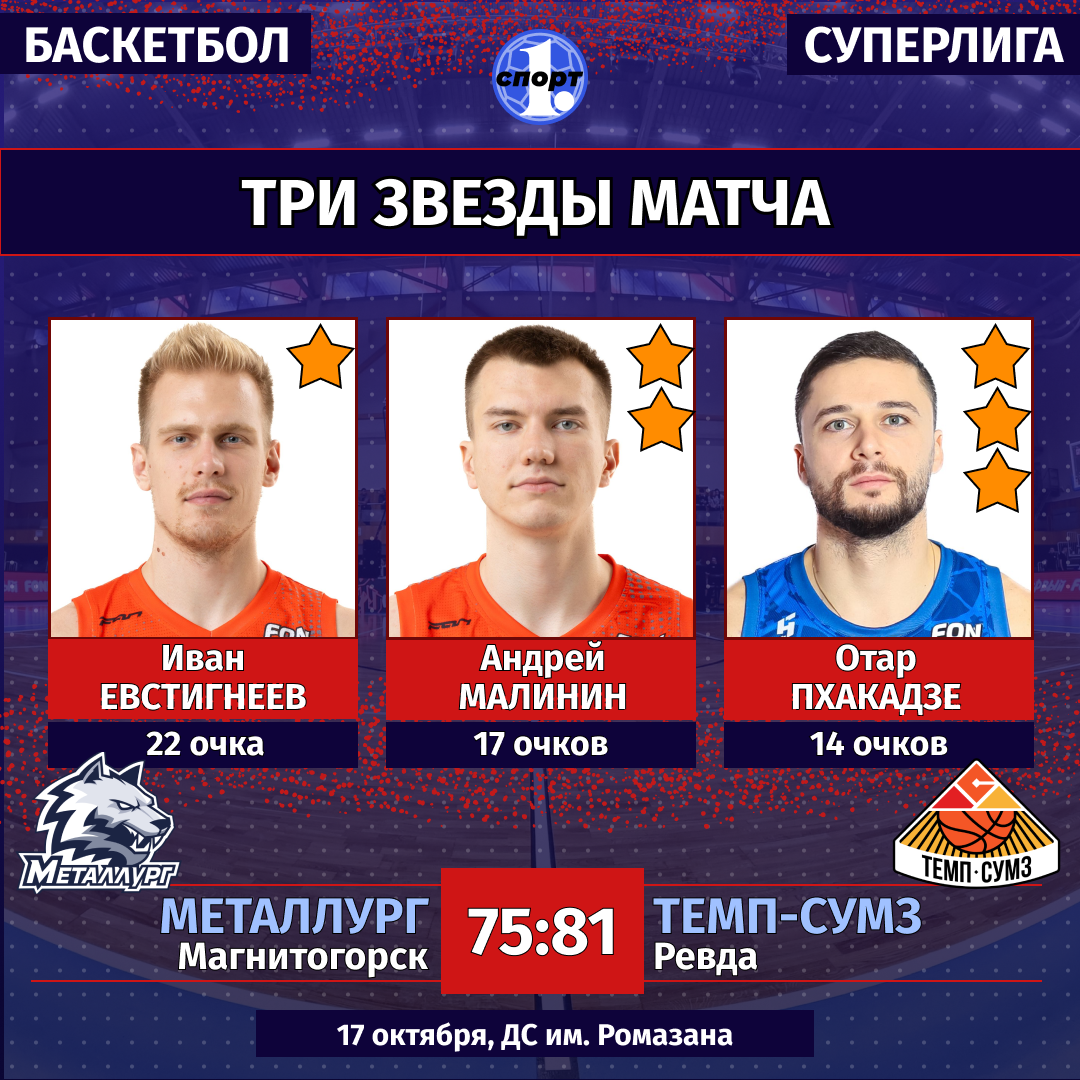17 октября. «Металлург» (Магнитогорск) — «Темп-СУМЗ» (Ревда) — 75:81 (20:19, 23:25, 75:81, 13:14).